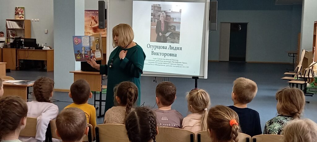 8 апреля прошла очередная встреча детской писательницы Лидии Огурцовой в библиотеке МБОУ «Лицей» Симферопольского района. В зале собрались маленькие читатели, воспитанники детского сада, а также их воспитатели. Юные зрители внимательно слушали выступление Лидии Викторовны. Принимали самое активное участие в общении, отвечали на вопросы, а самые смелые и подготовленные ребята прочли несколько стихотворений поэтессы.