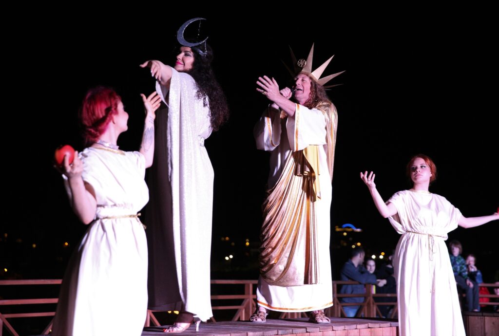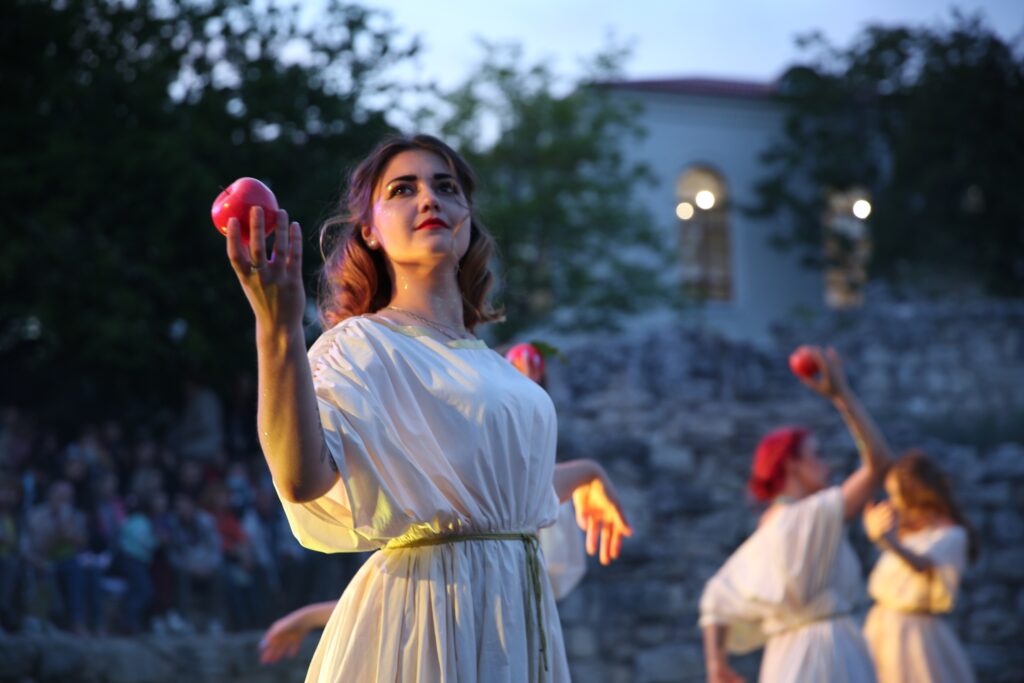 Торжественное открытие акции пройдёт в Античном театре Херсонеса Таврического. Встретят зрителей Гермес и Дева, которые положат начало праздничным мероприятиям. После этого на сцене состоится яркое представление, во время которого музы Эрато и Терпсихора и восхитительные нимфы Дриада и Нереида усладят глаза и слух зрителей своим искусством. Особым сюрпризом станут гладиаторские бои в честь сына Зевса, героя Геракла. Именно в Античном театре перед посетителями впервые предстанет Хранитель времени, который не только поможет совершить путешествие по эпохам, но и с удовольствием о них расскажет.