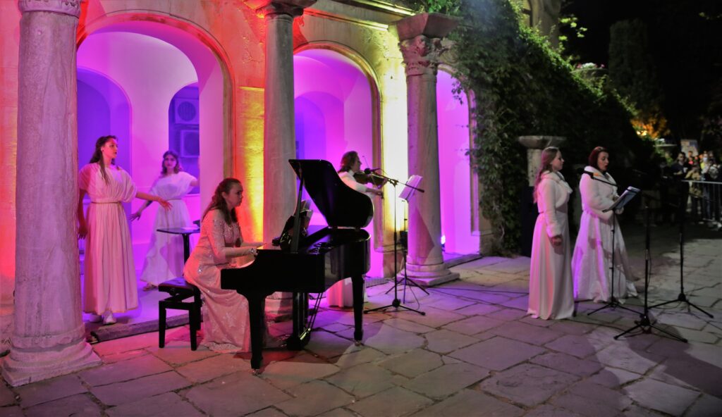 В Саду миниатюр музея-заповедника прозвучат арии из известных опер в сопровождении рояля и скрипки. Особую атмосферу создаст звучание ксилофона и «серебряной» флейты. Также посетителям кратко расскажут о возрождении Херсонеса в XIX веке, о деятельности графини П. С. Уваровой и К. К. Косцюшко-Валюжинича, основавшего первый археологический музей в Херсонесе ‒ «Склад местных древностей».
