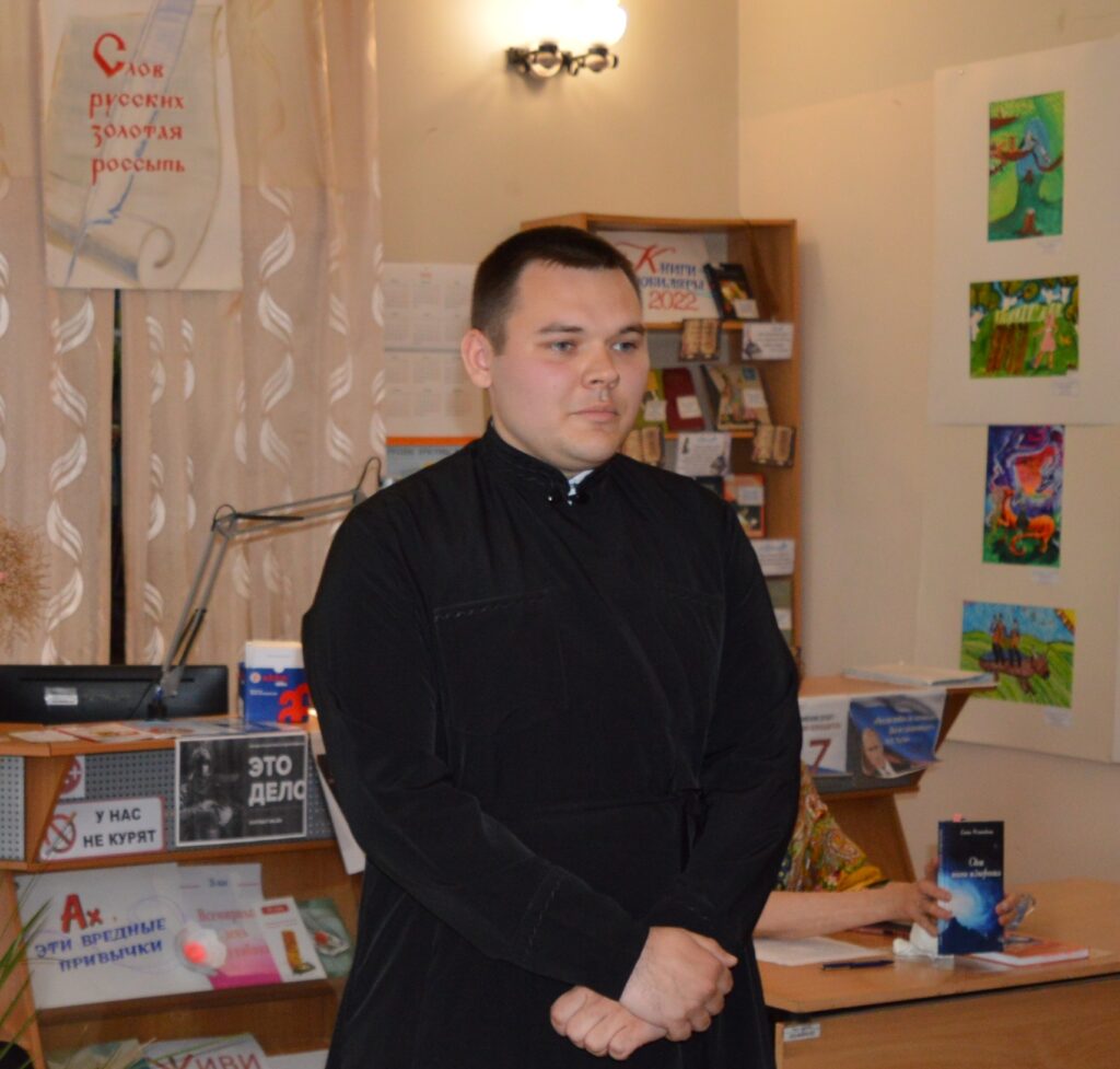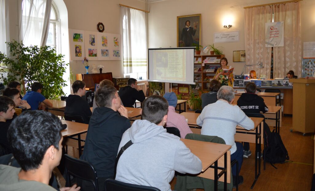 Торжественность в обстановку внесло и приветственное слово студента Таврической духовной семинарии Вадима Подзигуна. В предоставленном мне времени я постаралась вместе со студентами обозначить великую роль слова в жизни и в литературном творчестве. В ходе нашей оживленной беседы ребята слушали стихи, охотно отвечали на мои вопросы, развивали мысли о родном языке как живой силе единения.