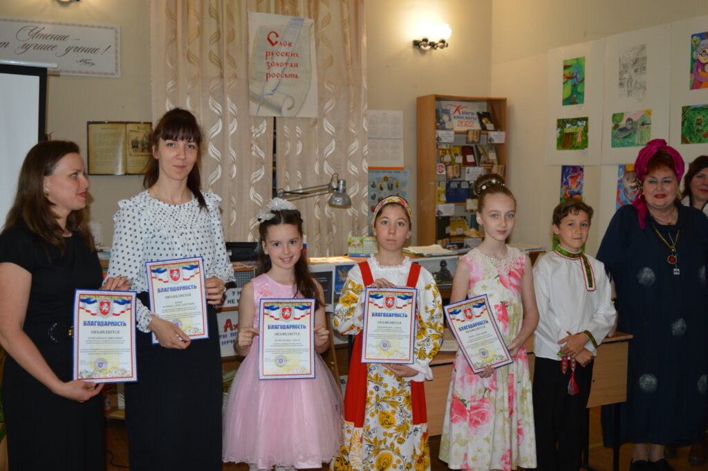 Эту тему поддержал баснописец и сценарист Виталий Горобцов, прочитавший стихи―посвящение просветителям Кириллу и Мефодию. Несомненно, украсили праздничную встречу звонкие голоса учащихся Симферопольской детской музыкальной школы имени Юрия Богатикова. Их музыкальные номера прошли под руководством концертмейстеров Марины Ярош и Виктории Цурканенко, а также преподавателя Елены Тихоновой. Глаза юных исполнителей блестели радостью от полученных благодарностей библиотеки и горячих аплодисментов зала.