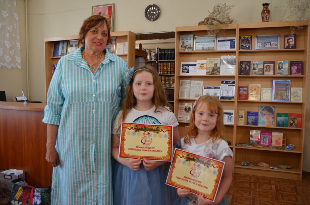 Наталья Васильевна также торжественно вручила дипломы Крымского центра творчества, науки и культуры двум юным сёстрам из Коктебеля – Екатерине и Анастасии Мельниченко, ставшим дипломантками межрегионального конкурса. Под аплодисменты зрителей девочки выразительно прочитали стихотворения.