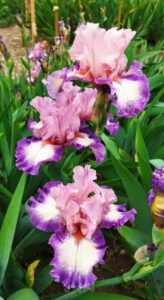 Второй цветовой группой по объему количества сортов после сине-голубой у ириса гибридного является фиолетово-сиреневая. На ее основе была создана куртина «Летние сумерки» с аналоговым типом композиции, для смягчения и некоторого разбавления густоты фиолетовых оттенков здесь были задействованы сорта розовых оттенков и с белыми верхними долями околоцветника, что придает палитре легкости и романтизма.